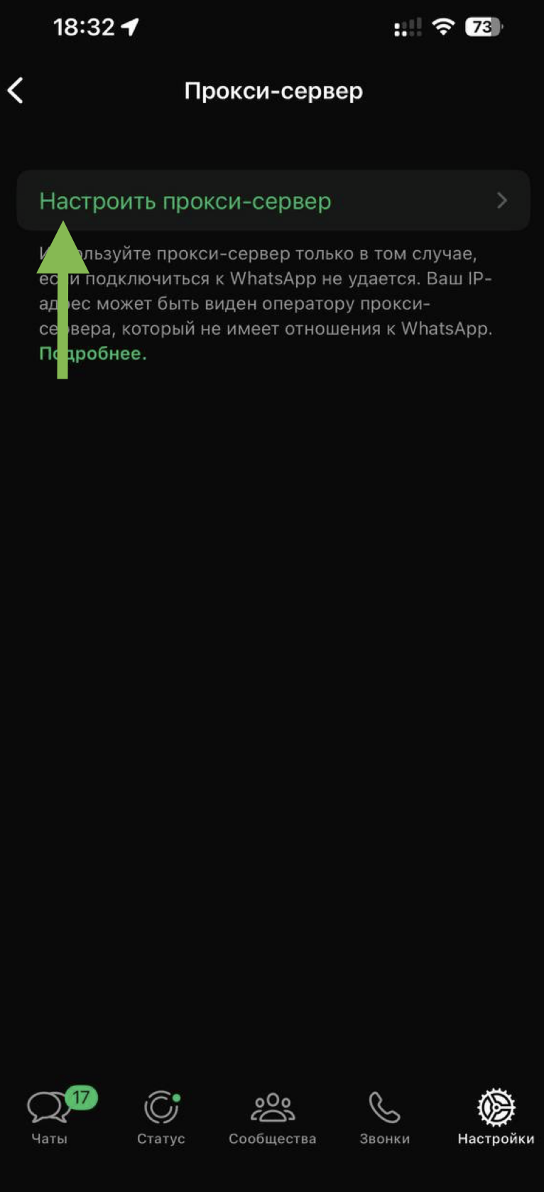 - Выберите опцию «WhatsApp Proxy»
